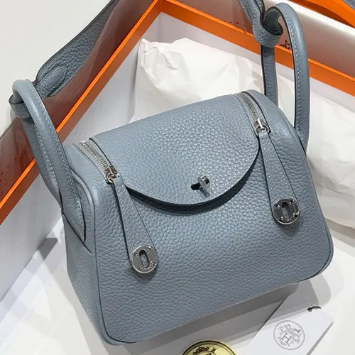 Hermes 에르메스 미니 린디 19 클레망스가죽 그레이블루 은장