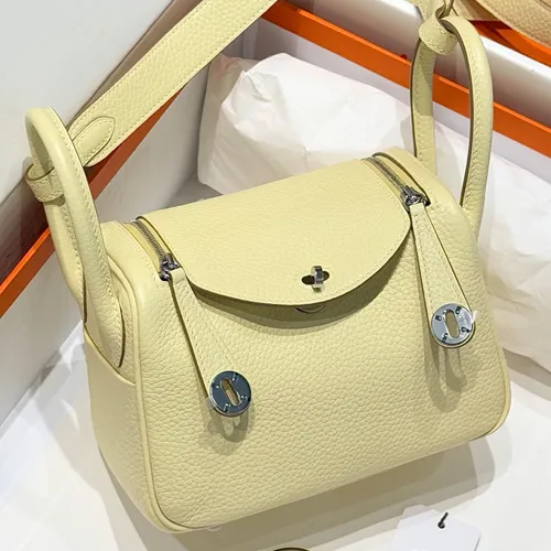 Hermes 에르메스 미니 린디 19 클레망스가죽 라임옐로우 은장
