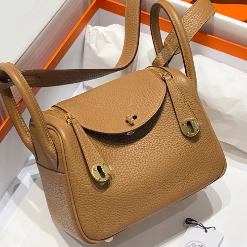 Hermes 에르메스 미니 린디 19 클레망스가죽 다크 베이지 금장
