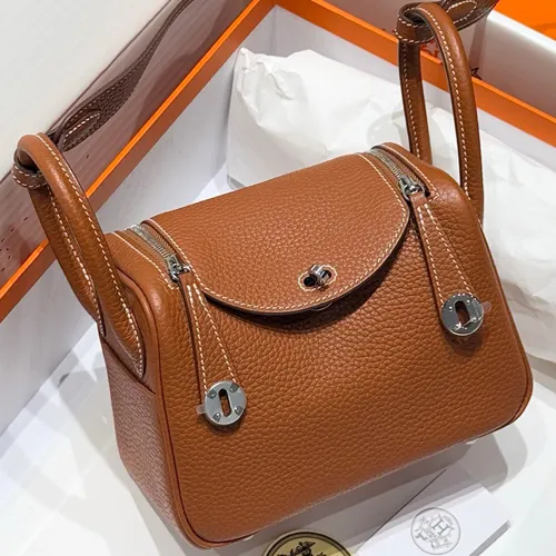 Hermes 에르메스 미니 린디 19 클레망스가죽 다크 오렌지브라운 금장