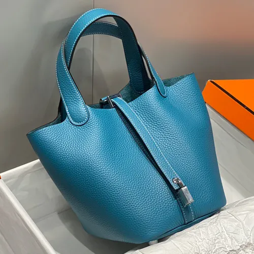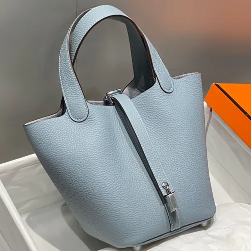 Hermes 에르메스 버킷백 피코틴 락 22 클망스가죽 파스텔블루 금장