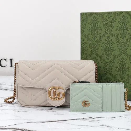 GUCCI 구찌 GG 마몽 마틀라세 숄더백 화이트 23CM