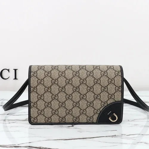 GUCCI 구찌 GG 엠블럼 레더 스트랩 디테일 월렛백 브라운