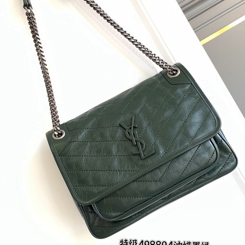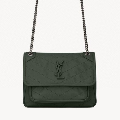 Saint Laurent Niki Baby 니키 베이비 먹색 그린 엠보 가죽 체인백