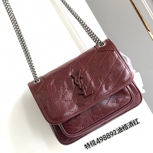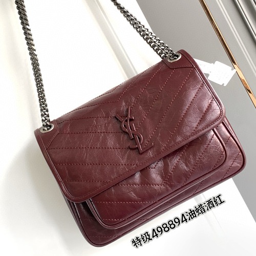 Saint Laurent NIKI 중사이즈 빈티지 레더 체인 숄더백 와인레드