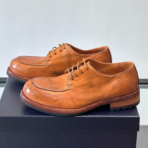 Prada 프라다 남성 워시드 홀스레더 수제 브로그 클래식 슈즈