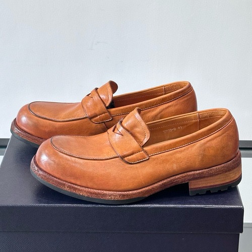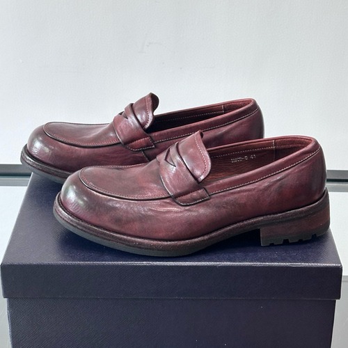 Prada 프라다 남성 워시드 홀스레더 핸드메이드 로퍼