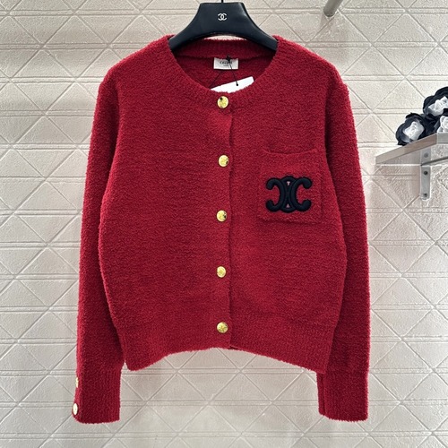 Celine 셀린느 레드 골드버튼 로고 니트 가디건