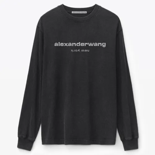 Alexander Wang New York 로고 스톤 워싱 오버핏 롱슬리브 티셔츠