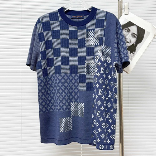 LOUIS VUITTON 루이비통 다미에 모노그램 패치워크 코튼 반팔 티셔츠