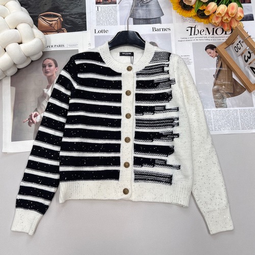 Louis Vuitton 루이비통 BALMAIN 블랙 화이트 스트라이프 스팽글 니트 가디건..