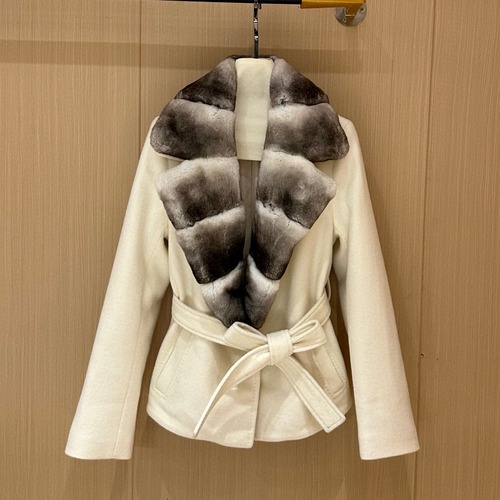 Fendi 양모 폭스퍼 카라 벨티드 자켓