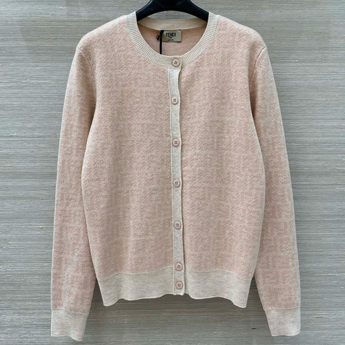 FENDI 펜디 핑크 라운드넥 FF 로고 니트 가디건