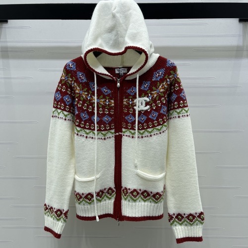 CHANEL 샤넬 양모 후드 니트 집업 가디건