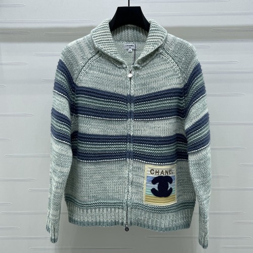Chanel 샤넬 스트라이프 울 니트 집업 가디건