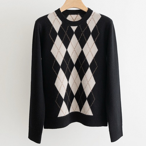 Max 마크스 25SS 아가일 라운드넥 울 블렌드 니트