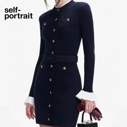 Self-Portrait 셀프 포트레이트 네이비 골드버튼 니트 셔츠 드레스