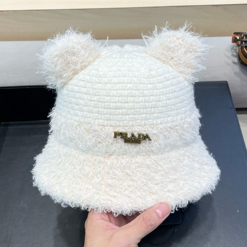 PRADA 프라다 귀여운 곰돌이 니트 버킷햇 - 겨울 신상 양털 퍼모자